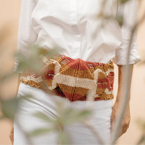 An often-neglected accessory, a designer belt can be a game-changing piece when worn correctly. Use it to add focus and structure to a loose dress, or to draw the eye to create a more balanced silhouette for square or diamond body types. Our ethical belts handwoven and hand-dyed using luxurious materials in the small communities of Ecuador and Colombia draw on the folklore and techniques of their indigenous communities. Vipop’s artisan belt collection makes mindful additions to your wardrobe, tell a story about the cultures they came from, and celebrate the curves of the body.